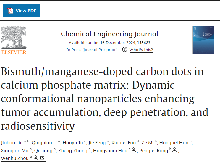 2024年12月,成人文学 周文虎教授团队与成人文学 湘雅三医院容鹏飞教授团队,成人文学 化学化工学院侯红帅教授团队在Chemical Engineering Journal(中科院1区Top期刊,IF=13.…
