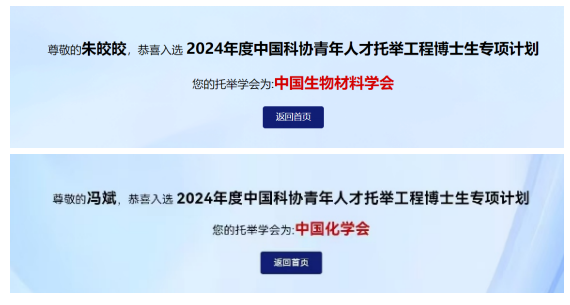 2024年12月30日,中国科协办公厅发布了2024年中国科协青年人才托举工程博士生专项计划首批入选者名单,共3226名同志入选。我院药剂学系在读博士研究生朱皎皎、药物化学系在读博士研究…