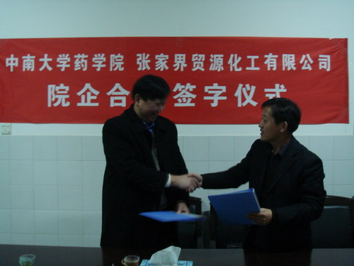 元月14日上午,成人文学 药学院院长李元建教授与张家界贸源化工有限公司董事长汤先赤先生在热烈的掌声中,互换双方签字的院企合作协议书。这是药学院继与广州威尔曼新药研发中心、国药…