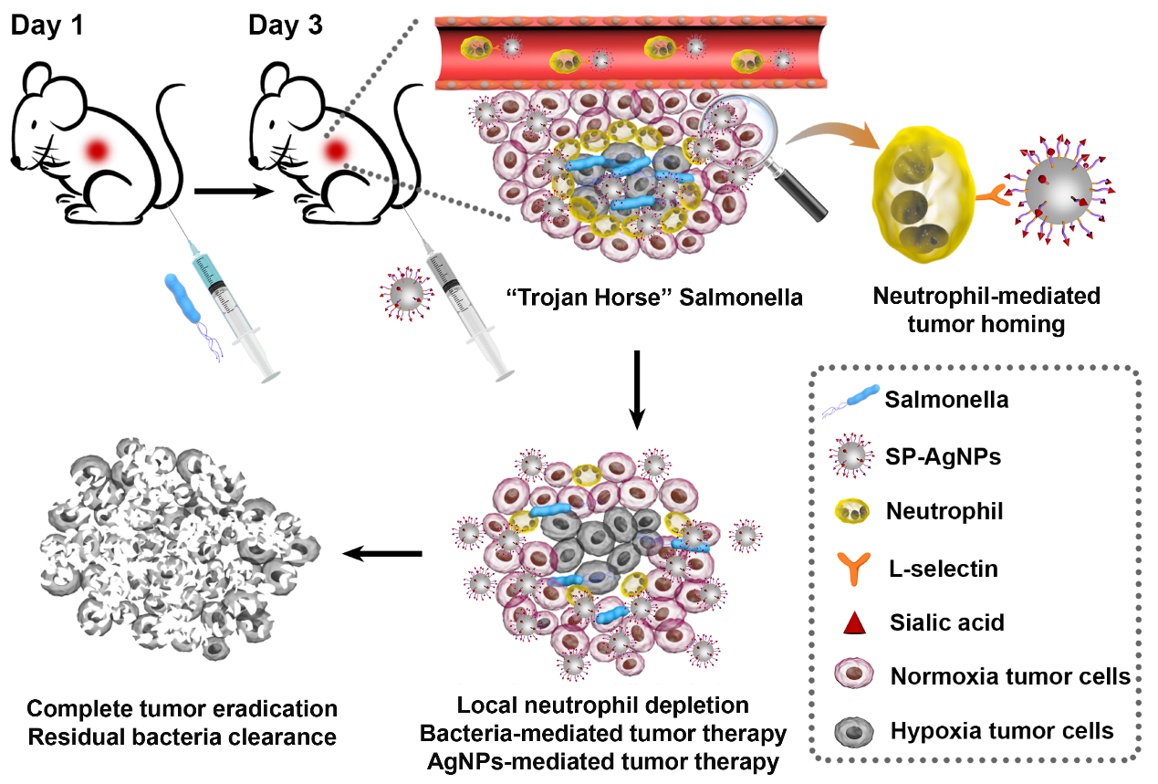 近期,我院丁劲松-周文虎教授团队与成人文学 湘雅三医院容鹏飞教授团队联合在国际权威期刊《Nano Letters》(IF = 11.238)上发表了题为“‘Trojan Horse’ Salmonella Enabling Tumor…