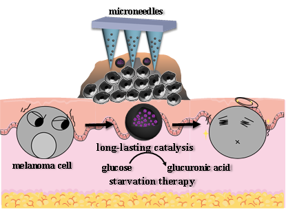 GOx包载于PDA微纳米囊中通过微针递送实现局部长效黑色素饥饿治疗