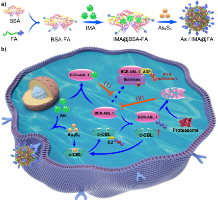 近期,我院丁劲松-周文虎教授团队与湖南中医药大学第一附属医院邓桂明研究员团队教授合作,在药剂学领域权威期刊《Journal of Controlled Release》(IF=9.776)上发表了题为“Imatinib Co-Loaded Targeted Realgar Nanocrystal for Synergistic Therapy of Chronic Myeloid Leukemia”的最新研究成果。该研究基于雄黄(As4S4)和伊马替尼(IMA)的协同作用机制,构建了一种联合两种药物的纳米递药系统,用于慢性粒细胞白血病(CML)的协同增效治疗。