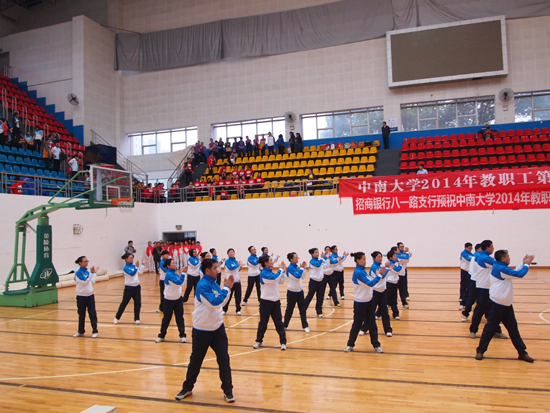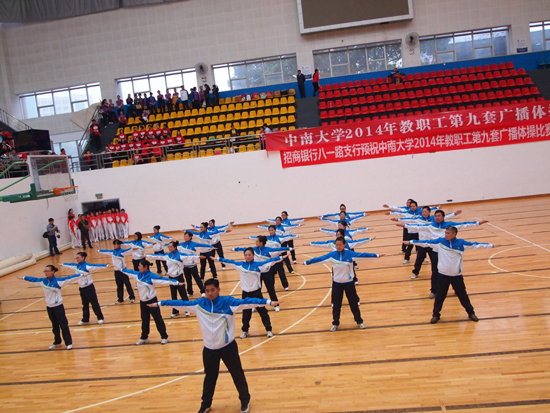 2014年健康女性第九套广播体操比赛在湘雅医学院新校区室内体育馆隆重举行。全校共有二级学院、直附属单位等27支队伍组队参加。药学部门工会积极组队参与并获参赛奖。