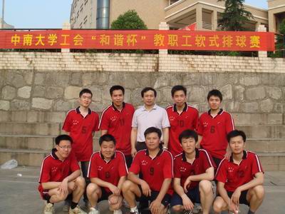 药学部门工会领导高度重视,药学院党总书记刘保平教授、临床药理研究所副所长刘昭前教授、王丹老师亲临现场与啦啦队一起为队员鼓劲呐喊,药学院副院长 程泽能教授和临床药理研究所副所长欧阳冬生副教授亲自上场参赛,教职工也积极响应,共有男女各9人组队参赛。女队因赛前未经训练,两场比赛均以0比2败北。男队员却个个意气风发,凭借团结协作、奋勇拼搏的精神,经过3天四场紧张、激烈地角逐,获得湘雅赛区亚军,并将于六月代表湘雅校区参加成人文学