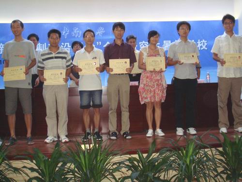 2010“新药创制前沿理论”全国研究生暑期学校结业仪式在湘雅医学图书馆学术报告厅举行。学校研究生院培养办主任陈立章教授代表学校出席并讲话。药学院院长李元建教授发表了热情洋溢的总结致词。沈阳药科大学郭云峰同学代表暑期学x校全体学员致感谢信。教育部“国家自然科学基金资助研究生暑期学校与建设绩效及跟踪评价”项目组特派员汪航博士参加结业仪式