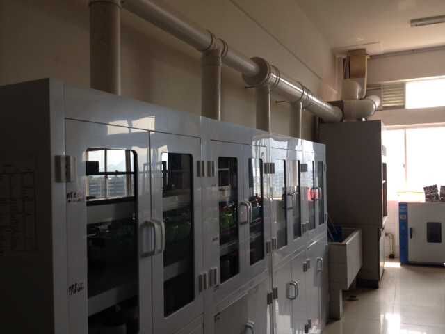 2015年暑假药学实验教学中心完成了教学实验室改造。改造主要为以下三方面:(1)增容改造:改造后可增容学生18名,按现有3个实验室计算,可同时容纳90名学生实验;(2)安全环保水平提升:新建了防腐通风试剂柜和气体防爆柜,扩建了紧急喷淋设备,更新了易制毒试剂库房试剂架和规章制度等;(3)功能完善规范:安装了多功能吊柜,常规电动设备柜和货架等,各种设备仪器按规定位置摆放和存放。