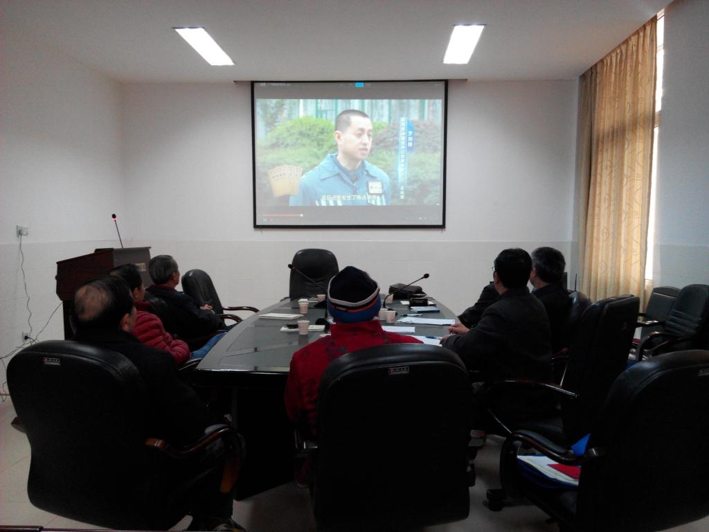 退休党员在集中观看警示片