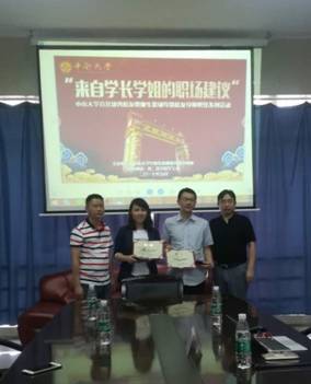 邓旭学长于2007年从我院取得学士学位后,选择了科学研究的道路,经历了长达十余年的深造后取得博士后学位并选择回归母校,担任我院教师。他提出:“做科研一定要专注、专心、热爱、坚持”。他分别从就业渠道、就业规划和就业后的调整三个角度为同学们做出指导,并且以十六字方针高度概括了面对就业的态度,即“志存高远,脚踏实地,矢志不渝,坚持不懈”。通过邓旭学长的建议,同学们对本专业的科研和深造也有了更多了解。