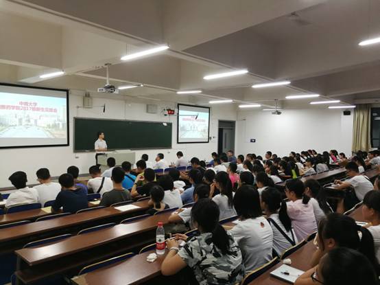 湘雅新校区T306教室召开,院党委彭林书记、王昊副书记、曾文彬副院长、李乾斌副院长、学工办和业务办老师及程岩教授、刘珍宝副教授、于霞副教授参加,见面会和入学教育由曾文彬副院长主持。