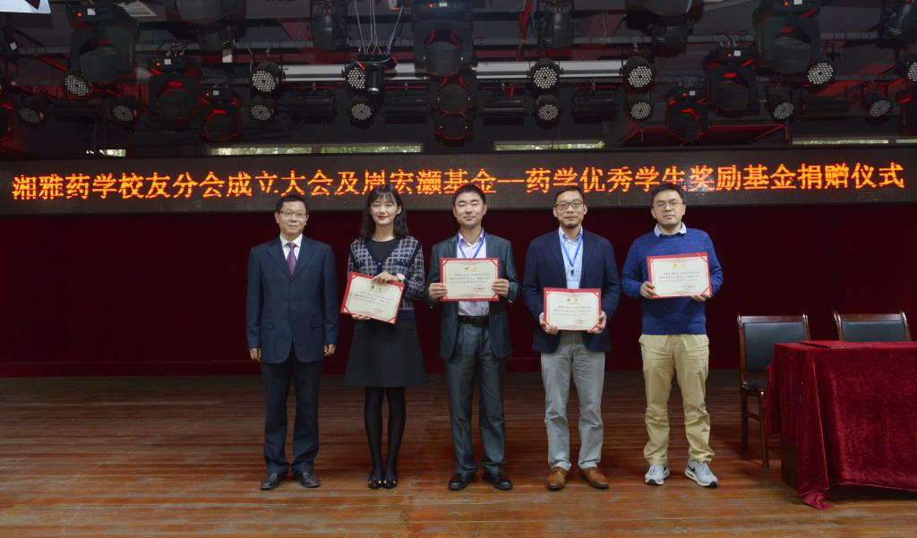 湘雅药学校友分会章程》;龚涛书记、李乾斌副院长分别为首届校友分会会长、副会长及秘书组成员颁发聘书。