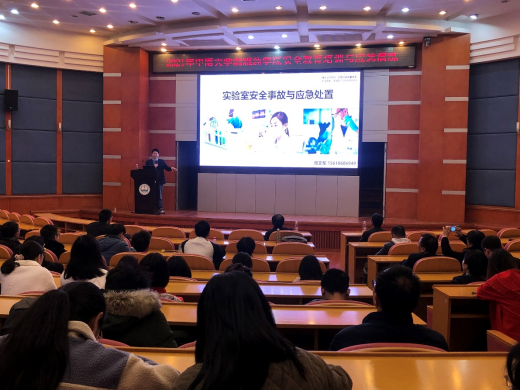 举行2021年度第四次安全教育与应急处置培训,培训聘请校外资深安全培训专家(上海纷研生化科技有限公司)授课。学院领导刘昭前副院长、李乾斌副院长出席培训,学院综合办、各系(中心)、学工办主任、教辅人员、各课题组安全员与研究生等200余人参加了此次培训,培训由药学实验中心陈军主任主持。