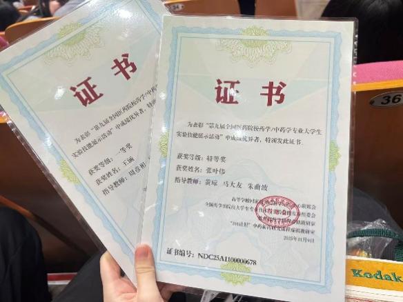 近日,第九届全国医药院校药学/中药学专业大学生实验技能展示活动在中国药科大学圆满落幕。本次大赛吸引了来自全国159所医药院校的318名优秀学子同台竞技。我院选派的两名参赛选手张叶伟(药学专业)和王涵(临床药学专业)凭借其出色的理论基础、规范的实验操作和突出的综合能力,在激烈的竞争中脱颖而出,分别荣获特等奖和一等奖。