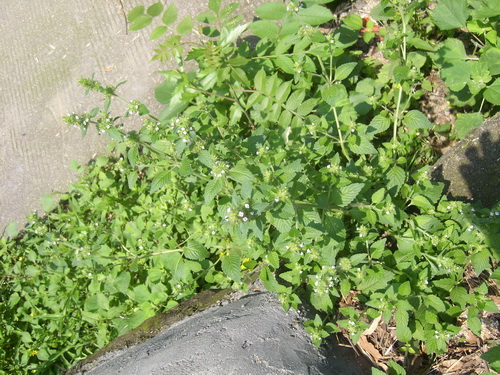 风轮草Clinopodium chinensis O.Kze。多分枝,全体被柔毛。叶对生,卵形,顶端尖或钝,基部楔形,边缘有锯齿。花密集成轮伞花序,腋生或顶生;苞片叶状,线形;花萼筒状,外被粗毛;花冠淡红或紫色。有除湿解毒,凉血止血之效。主治牙龈溃烂,肾炎,血尿,无名肿毒。