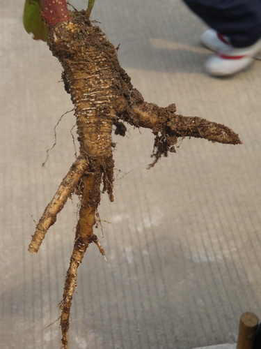 商陆根:粗壮,肉质,圆锥形,外皮淡黄色。