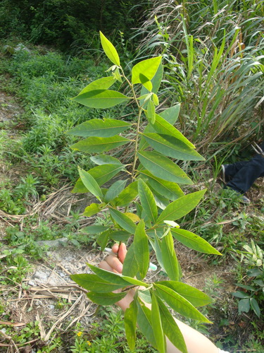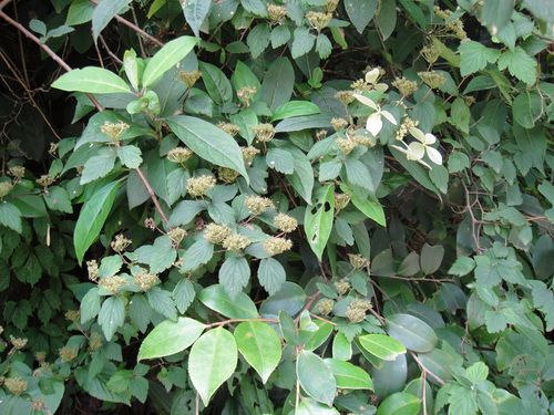山苍树Litsea cubeba 别名山胡椒、毕澄茄,樟科山姜子属。落叶灌木或小乔木,树皮灰白色、平滑;小枝初有黄褐色毛,后脱落;芽鳞片红褐色。单叶互生,叶薄革质,多为长椭圆形至倒卵状椭圆形,背面苍白色,密生细柔毛。叶全缘,羽状脉,叶片枯后留存树上,来年新叶发出时始落,雌雄异株。腋生伞形花序,有短花序梗,花黄色,芳香。是山区经常见的调料,提神、开胃、祛暑,可以杀腥、驱虫,果及叶可提取芳香油,作食品及化妆品香精;种子含脂肪油,可制肥皂及机械润滑油;根、枝、叶、果实入药,有祛风湿、消肿、解毒、止痛之效。