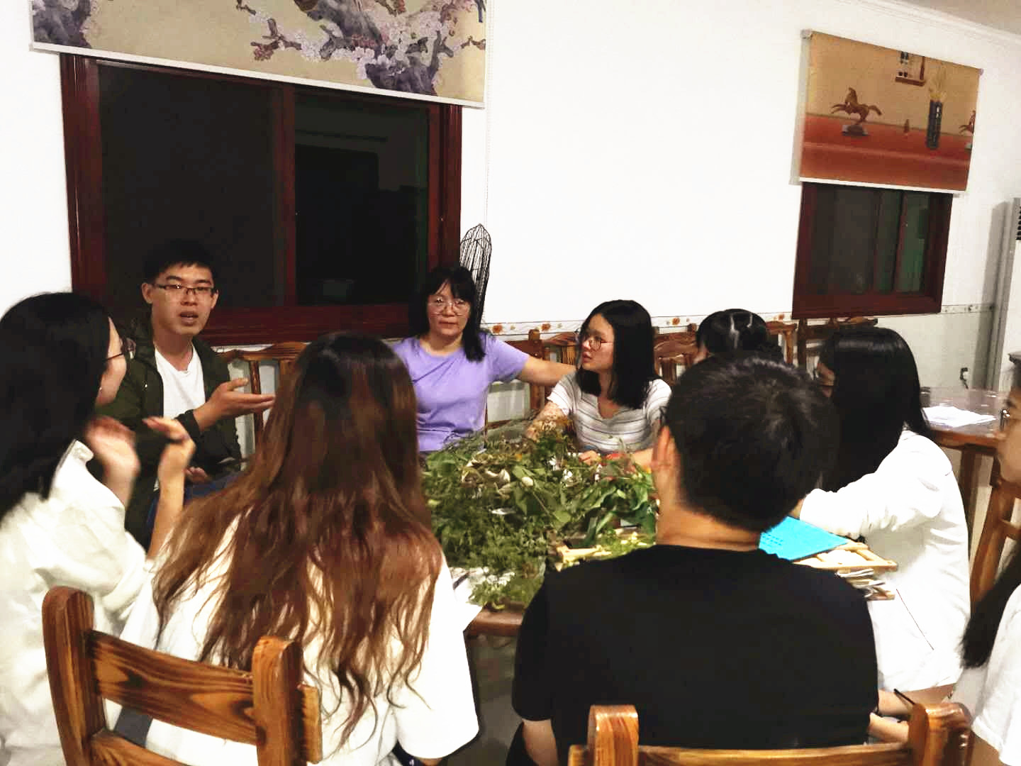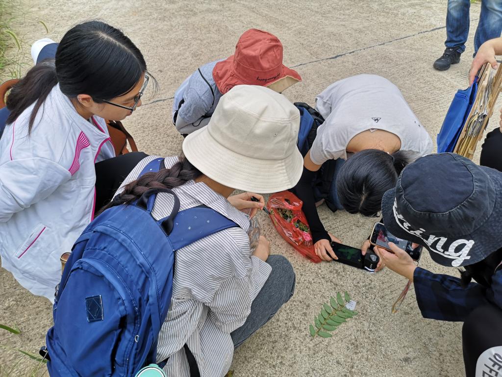 本次野外实习教学的两大改革之一:让每个学生从植物形态到药用部位再到功效地讲解一到两株植物,这种学习方式既调动了学生学习的积极性也锻炼了学生的查阅资料与现场讲解的能力,值得推广。图为学生在讲解(手持扩音器,很有仪式感)。