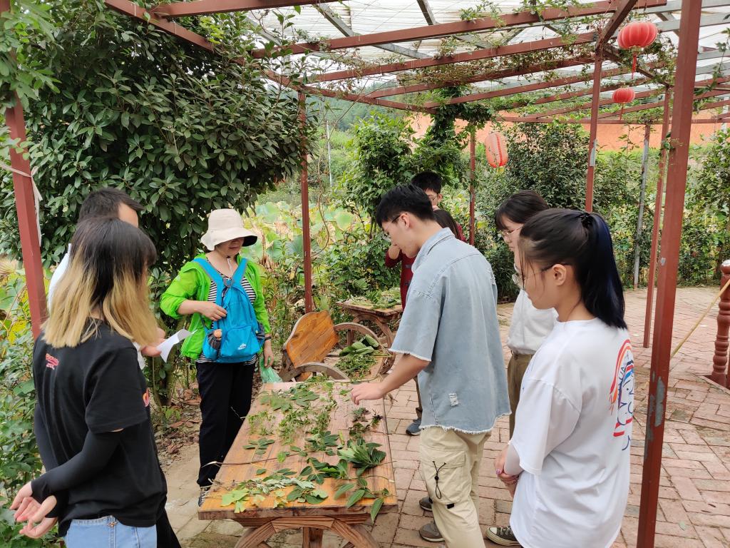 9月11日,学生是10:30从考场上出来拍完合影就上车的,11:00准时出发,到达贾岭药博园的住地已经13:30左右,好在之前就已经分配好了房间,车至半途通知基地负责人打开每间房间,准备好饭菜,所以一到基地,各组领完工具就直接进房间放行李,然后进餐厅午饭,稍作休息,14:30再集合时,个个元气满满,对接下来的学习充满期待。