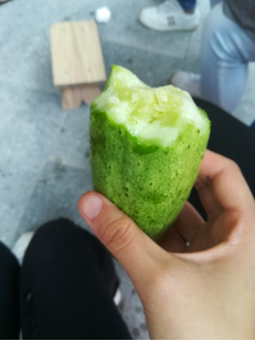 在学习之余,另外一件让我非常幸福的事就是,老师带的零食都被我们给吃掉了,是的,这就是一个吃货的简单幸福。在山上吃中饭的过程中才发现,老师带的零食比我们带的都多呢,而且从小就对老师有崇拜感的我们觉得老师给的零食特别好吃。相信大家应该都是这样的,小学时候得到老师的表扬会特别开心,得到老师奖励的糖果会特别开心,到了大学,能吃到老师给的零食当然还是非常的开心。这是一种从小延续到大的幸福感和满足感。老师在半路的一个老奶奶家里给我们买的水果黄瓜,真的让我印象非常深刻,这是我第一次见到这个品种的黄瓜呢,觉得非常好吃!甜甜的脆脆的,吃起来超级幸福!