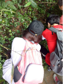 我们步行上下山,每天以湖南省南岳树木园为中心向各方向探索,尽可能多得去接触各种植物。一路上老师耐心地告诉我们这是什么植物,什么科属,如何辨别,什么部位入药,里面何种化学成分有何效用。每当老师开始讲解,大家就积极得上前听讲,用手机拍照做笔记。遇上老师也不确定的植物,大家一起用识花君、花伴侣、形色等识花软件,综合各方结果,仔细比对然后确定答案,实在不确定的便带回住处大家一起讨论。起初被一些长得极相似的植物乱了阵脚,但静下心来细致地观察其叶序、叶脉、叶缘还有花形等后便豁然开朗。枸骨的叶是互生的,而阔叶十大功劳的则是对生的;接骨木圆锥聚伞花序顶生,具总花梗,花序分枝多成直角开展,花冠蕾时带粉红色,开后白色或淡黄色,而牡荆聚伞花序顶生或侧生,小苞细小,线形有毛,着生于花梗基部,花冠淡紫色……