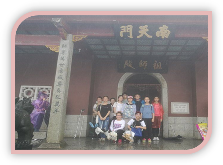 或许是过于劳累,登上南天门后,我们没有预想中的欢呼庆祝,而是平静的打量着云雾缠绕的南天门,冷风骤雨也迫使我们躲进庙里,小憩一番。四周空濛一色,茫茫一片,山下的植被个个都带着白色的帽子,隐匿起来,不禁让人不断浮现出电视剧《西游记》中的仙境之景。我们匆匆的拍了张合照,不敢做过多停留,便急忙下山了,毕竟这湿冷的仙境还是归属于神仙的,并非我们这些采药童子。