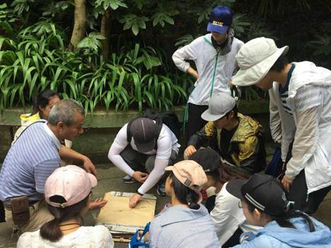 一路上认植物、学植物、做标本,感觉时间过得特别快。不知不觉走到了一个瀑布前,好像是叫下桎木潭,看到瀑布之后大家都非常开心,正好在瀑布下有几块大石头,这时有同学提议就在这里考试吧。于是同学们手忙脚乱地从袋子里拿出植物,分别摆在眼前,然后不约而同地开始一起朗读,麦冬百合科、菝葜百合科、黄独薯蓣科......就好像小学生晨读现场。等到考试的时候,发现平时在书本上那些很难记的植物竟然一下子都记住了,于是非常有成就感。这种边玩边学的方式不仅提高了学习效率,也让记忆更加深刻,更为我们带来了很多乐趣。
