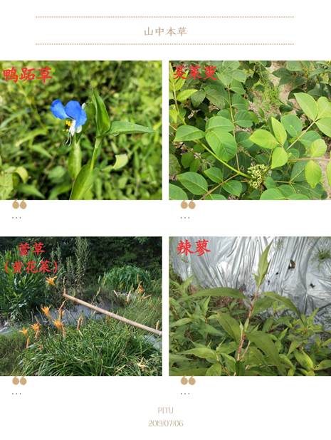 温柔而直率的曾老师远比我想象中节奏要快,刚在山路上行进数分钟,手中的笔,耳中的名,眼中的草交互,让我有些应接不暇,木槿,紫苏,辣蓼,栝楼,鱼腥草……,抓紧学习的同时,一步一药也让我惊异于此处草药的数目之多,种类之广;更惊异于其貌不扬的山间小花小草,竟各有独到的药用,可医世上千百病疾。