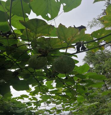 短暂的休息片刻后,各组老师就带着同学们一起出发寻药去了。在药博园附近,我们见到了形似小西瓜的“瓜蒌”,根能用来做葛根粉的豆科植物“葛”,人参的伪品“商陆”,以及全身都是宝的“荷”。
