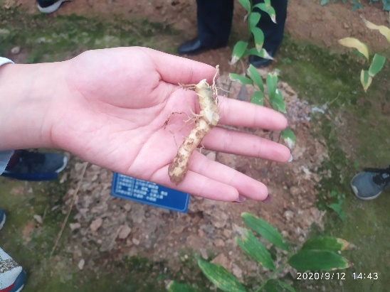 经过了一中午的休整和丰盛美味的午餐后,我们再一次踏上了鉴别药材的路途中。这一次我们选择的是药博园的大棚。在棚子里我们看到的玉竹以及黄精,老师仔细讲解了辨别二者的方法,唯恐我们今后混淆。在大棚里,我们又知道了好多之前没有见过的药材,比如石菖蒲,茜草,牛膝等等。而在大棚外面的园子里,我们见到了一个让我们极为惊喜的植物,就是香橼。它的叶子有着柠檬的清香,但又不似柠檬酸涩,闻起来提神醒脑又略带一丝香甜。我们拿出了工具想要挖一株在宿舍里养着,但是没有想到,看似弱小的植株下面居然有着茂密的根系。我们拿着铲子然后刨了好久,