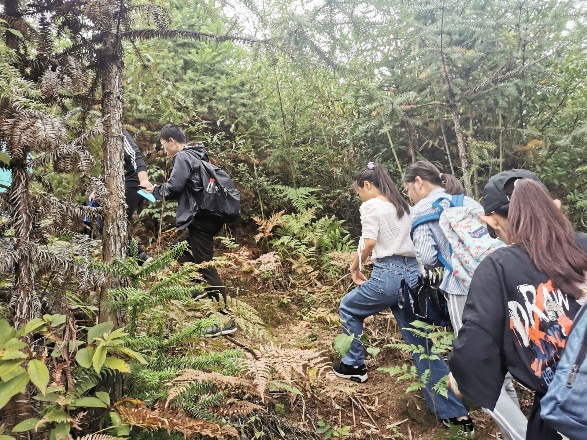 在一晚上的酣睡过后,我们第二天就正式踏上了上山的旅程,我们没有走正常的路,我们走的是山路与其他两个组一起,我们三个组共同上山,互相照应。由于之前刚下过小雨,所以山上的泥土微微有些湿润与树木一起散发着大自然的清香。在上山的路途中,老师一边教我们新的药用植物,一边考我们昨天讲过的植物。然而不出所料的是有很多植物我们已经忘记了。这使我们对于明天的考核倍感压力,但是因为是上山途中,所以这一点点压力和烦恼随着清风烟消云散,我们继续快乐的带着喜悦的心情上山。