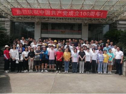 药学专业全体同学在药博园摆出党徽和“100”字样,歌颂祖国的伟大。