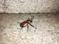 我们见习的地方叫做贾岭药博园。处在群山环绕处,环境优美。那里有一个小的水泉,水从岩石中渗出来,清澈见底,直接饮用甘甜清冽。这让我想起了我的老家的饮用水,虽然也是从山顶上的水井中取水,但流出来的水经常是相当的浑浊。另外我们在贾岭看到了许多小时候才能看见的虫子。比如这只独角仙就是在门口发现的。然后我们又在广场的下坡那里又发现一只。所以不得不说这里的生态令人惊喜。
