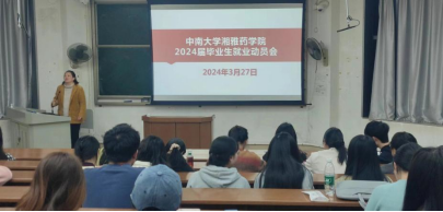 会议伊始,学院党委副书记唐媛就目前2024届毕业生就业形势和就业情况进行分析,鼓励同学们抓住春招机会,积极参加企业招聘会,特别是3月31日在湘雅新校区开展的大型双选会。