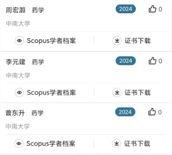湘雅药学学科周宏灏院士、李元建教授、曹东升教授入选药学学科“中国高被引学者”。